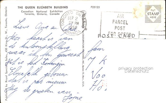 old postcard Toronto Canada Queen Elizabeth Building postalisch gelaufen Erhaltung siehe scans
