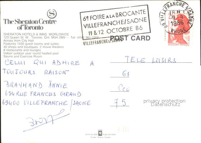 old postcard Toronto Canada Sheraton Center postalisch gelaufen Erhaltung siehe scans