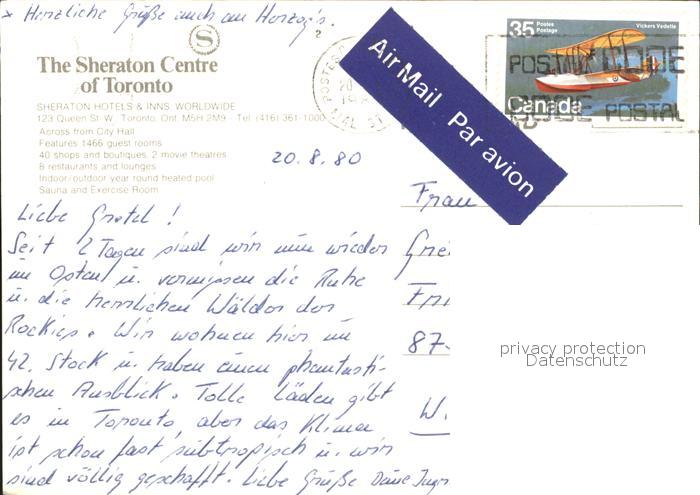 old postcard Toronto Canada Sheraton Centre postalisch gelaufen