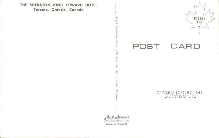 Toronto Canada Sheraton King Edward Hotel postalisch nicht gelaufen Erhaltung siehe scans
