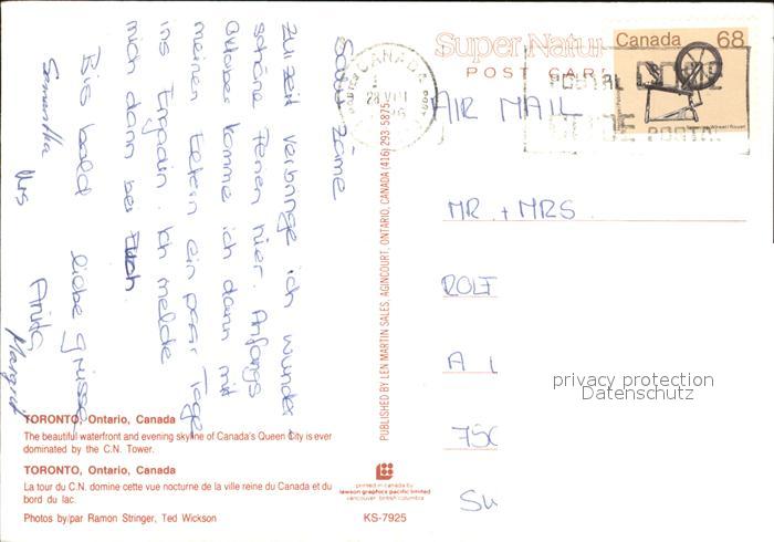 old postcard Toronto Canada Skyline Tower CN postalisch gelaufen Erhaltung siehe scans [WerneD78 kt117box]
