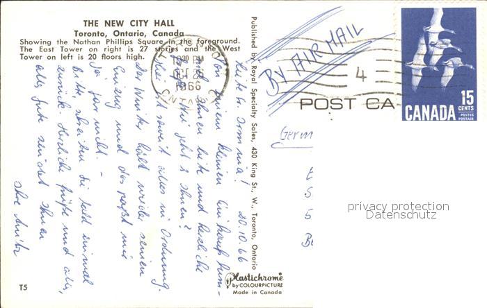 old postcard Toronto Canada The New City Hall postalisch gelaufen Erhaltung siehe scans [WerneD48]