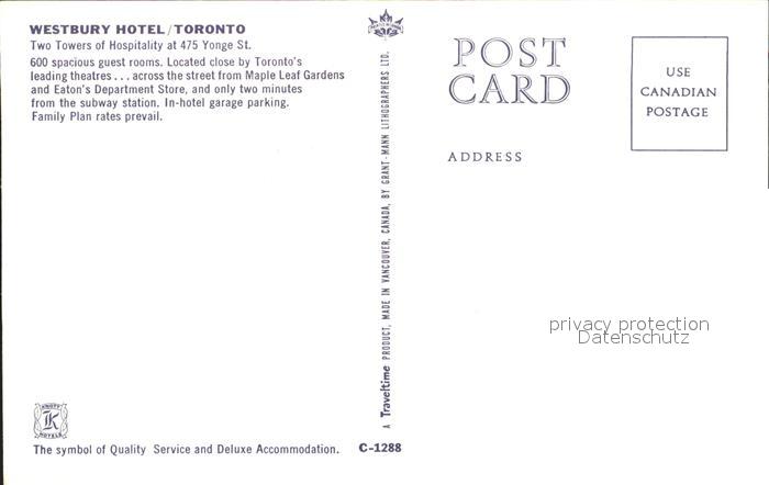 Toronto Canada Westbury Hotel postalisch nicht gelaufen Erhaltung siehe scans