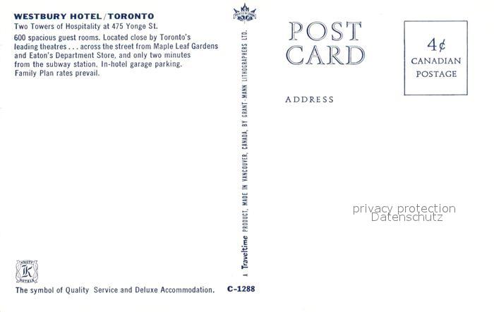 Toronto Canada Westbury Hotel postalisch nicht gelaufen Erhaltung siehe scans [FriedD77]