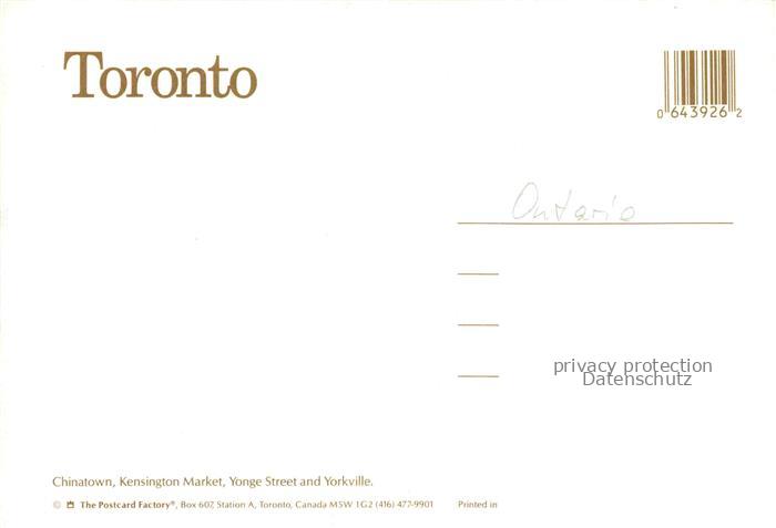 74119674 TORONTO Ontario Canada The streets of the city Chinatown Kensington Market Yonge Street and Yorkville postalisch nicht gelaufen Erhaltung siehe scans [FriedD77] KatCode: 14110