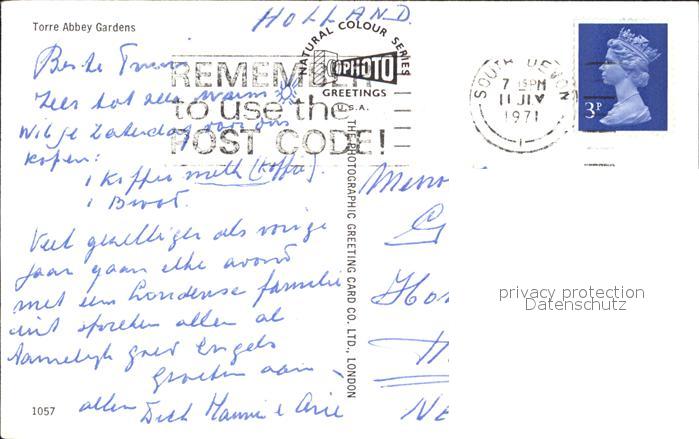 old postcard Torquay Torbay Torre Abbey Gardens postalisch gelaufen Erhaltung siehe scans