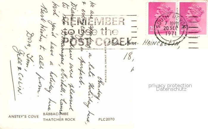 old postcard Torquay UK Bucht Kueste Strand Insel postalisch gelaufen Erhaltung siehe scans [FriedD77]