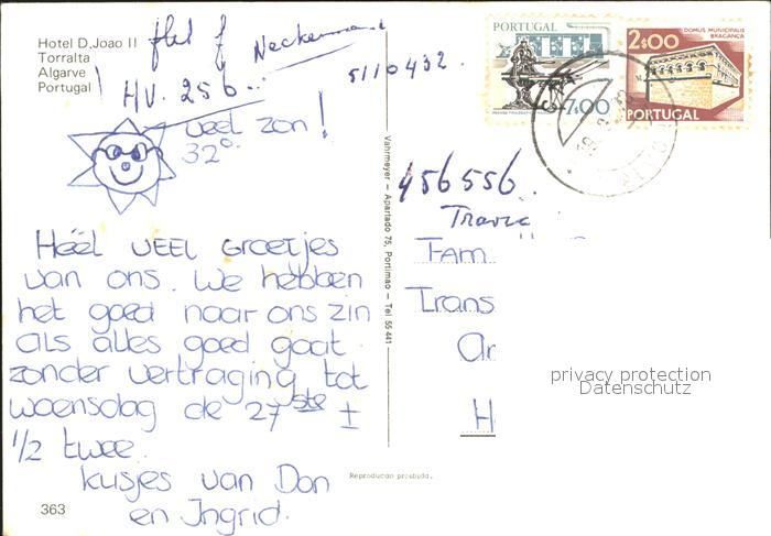 old postcard Torralta Hotel D Joao II postalisch gelaufen