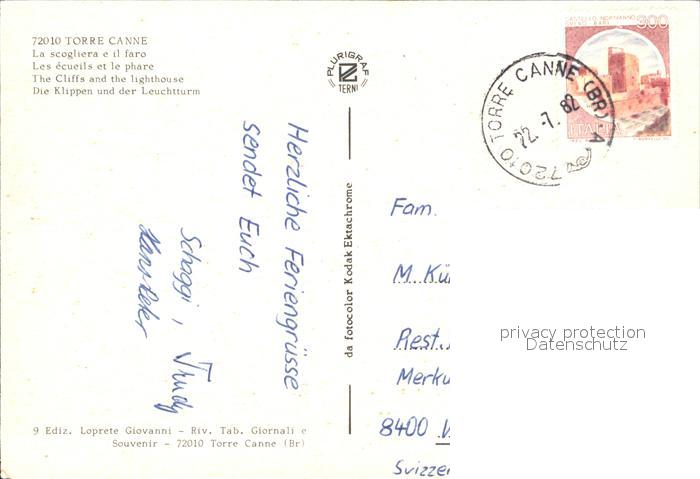 old postcard Torre Canne Klippen Leuchtturm postalisch gelaufen Erhaltung siehe scans