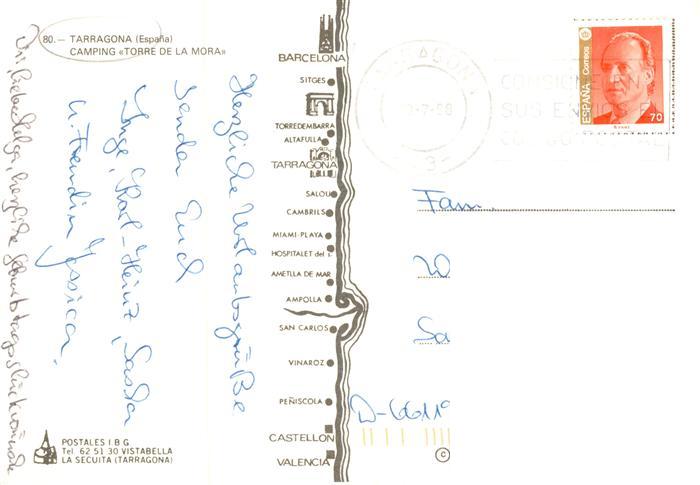 73907692 old postcard Torre de la Mora Tarragona ES Fliegeraufnahme Camping Torre de la Mora postalisch gelaufen Erhaltung siehe scans [WerneD78] KatCode: 11510
