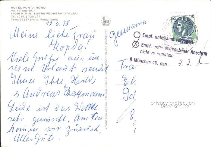 old postcard Torre Pedrera Hotel Punta Nord Swimming Pool postalisch gelaufen Erhaltung siehe scans