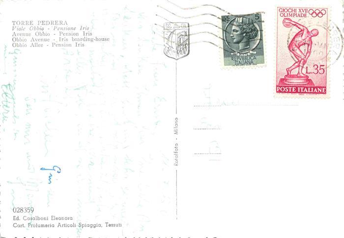 73974866 old postcard Torre Pedrera RIMINI IT Viale Obbio Pensione Iris postalisch gelaufen Erhaltung siehe scans [WerneD78] KatCode: 11240