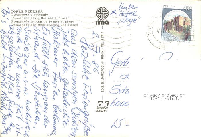old postcard Torre Pedrera Strandpromenade postalisch gelaufen Erhaltung siehe scans