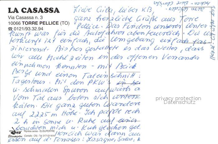 Torre Pellice La Casassa Fliegeraufnahme postalisch nicht gelaufen Erhaltung siehe scans