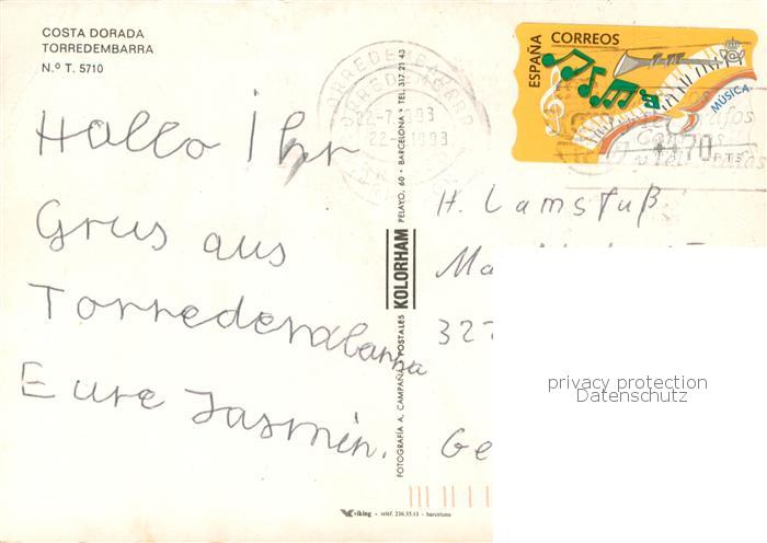 Torredembarra Tarragones ES Strandpartie postalisch nicht gelaufen Erhaltung siehe scans [WerneD78]