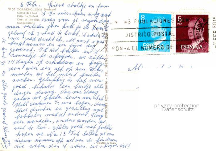 old postcard Torremolinos postalisch gelaufen Erhaltung siehe scans [NatalD47]