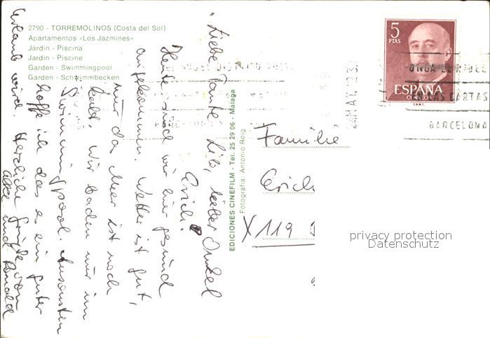 old postcard Torremolinos Apartamentos Les Jazmines postalisch gelaufen Erhaltung siehe scans