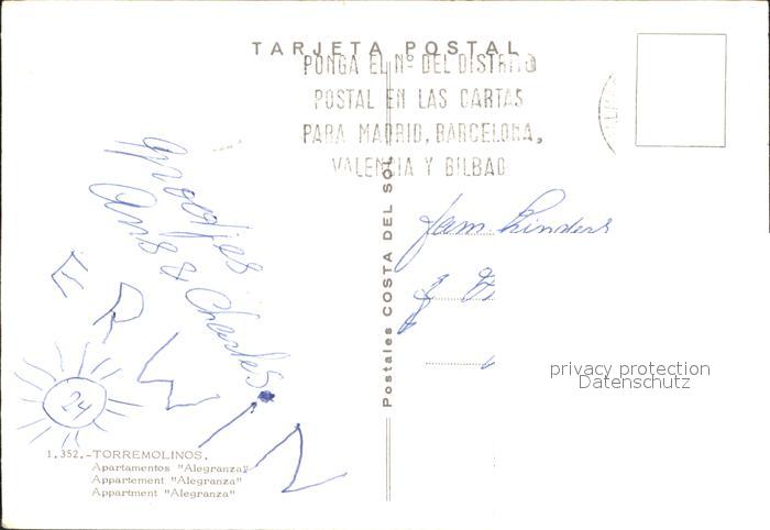 old postcard Torremolinos Appartement Alegranza postalisch gelaufen Erhaltung siehe scans