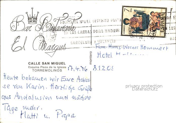 old postcard Torremolinos Bar Restaurante El Margues postalisch gelaufen Erhaltung siehe scans