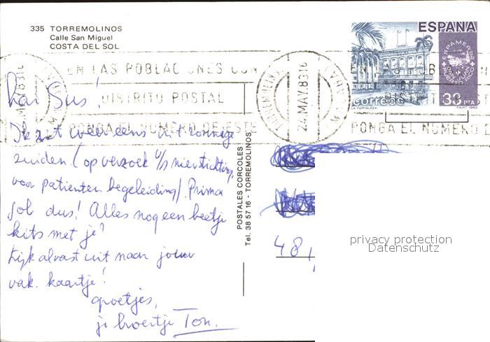 old postcard Torremolinos Calle San Miguel postalisch gelaufen Erhaltung siehe scans [AndreD76]