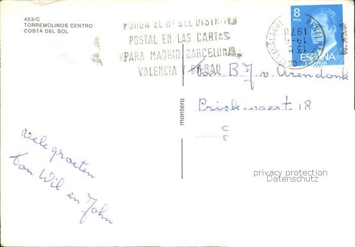 old postcard Torremolinos Centro postalisch gelaufen Erhaltung siehe scans