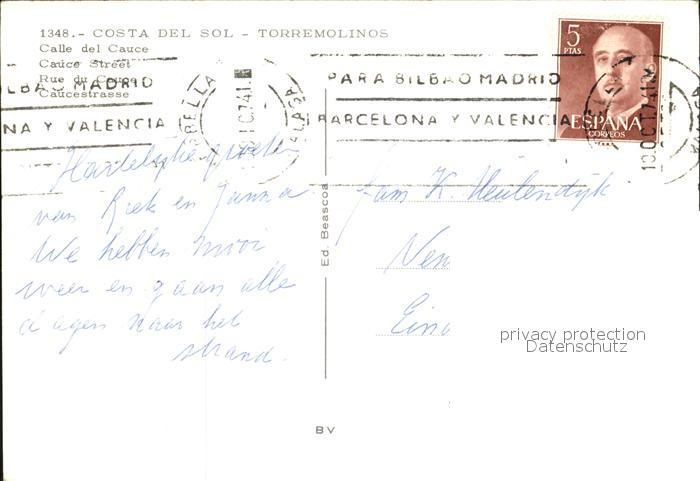 old postcard Torremolinos Costa del Sol Calle del Cauce postalisch gelaufen Erhaltung siehe scans