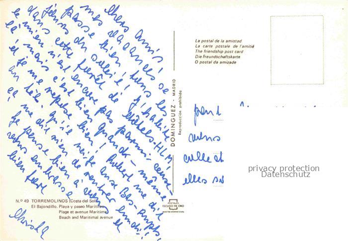 74035125 Torremolinos ES El Bajondillo Playa y paseo Marítimo vista aérea postalisch nicht gelaufen Fliegeraufnahme Erhaltung siehe scans [FriedD77] KatCode: 11510