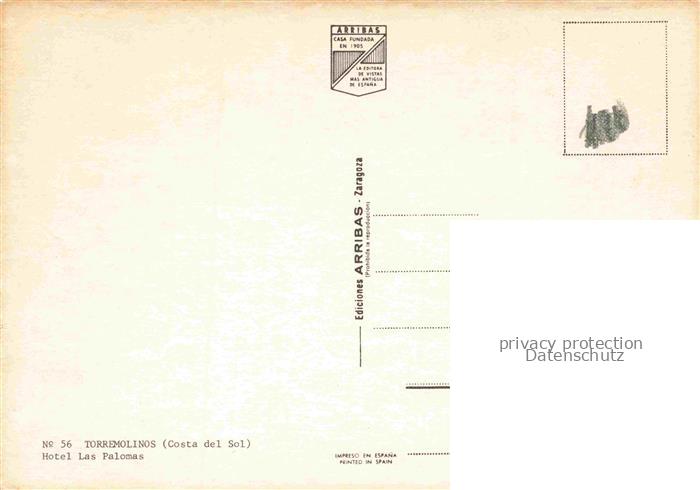 74085050 Torremolinos ES Hotel Las Palomas Fliegeraufnahme postalisch nicht gelaufen Erhaltung siehe scans [WerneD78] KatCode: 11510