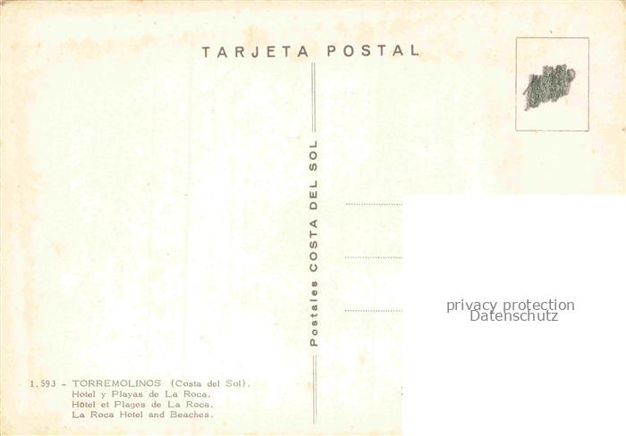 74085051 Torremolinos ES Hotel y Playas de La Roca postalisch nicht gelaufen Erhaltung siehe scans [WerneD78] KatCode: 11510