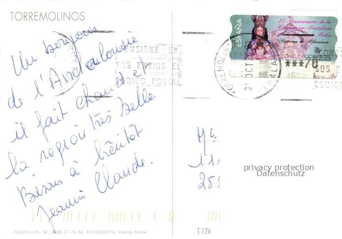 74034297 old postcard Torremolinos ES Kuestenpanorama Strand postalisch gelaufen Erhaltung siehe scans [FriedD77] KatCode: 11510