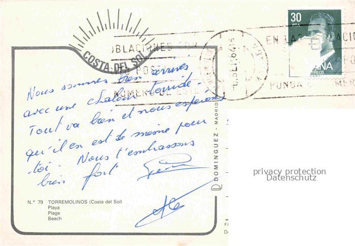 74034293 old postcard Torremolinos ES Playa Strand Hotels postalisch gelaufen Erhaltung siehe scans [FriedD77] KatCode: 11510