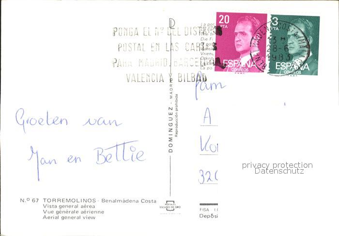 old postcard Torremolinos Fliegeraufnahme postalisch gelaufen Erhaltung siehe scans