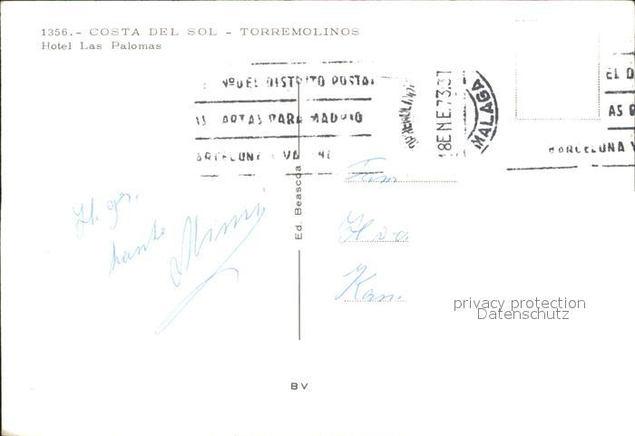 old postcard Torremolinos Hotel Las Palomas postalisch gelaufen Erhaltung siehe scans