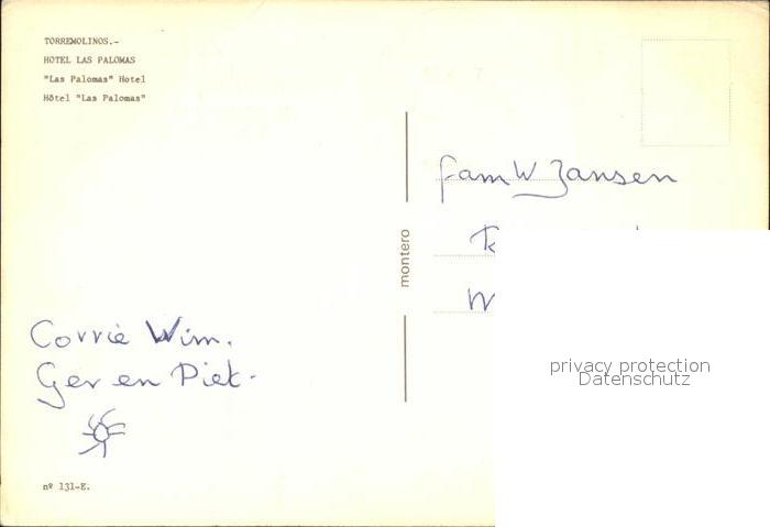 old postcard Torremolinos Hotel Las Palomas Pool postalisch gelaufen Erhaltung siehe scans