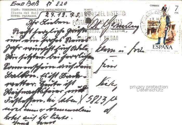 old postcard Torremolinos Hotel Palmasol postalisch gelaufen Erhaltung siehe scans