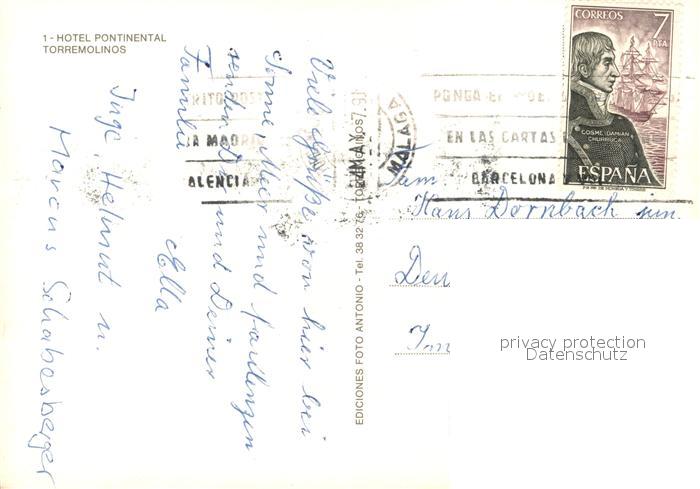 old postcard Torremolinos Hotel Pontinental postalisch gelaufen Erhaltung siehe scans [KathaD81]