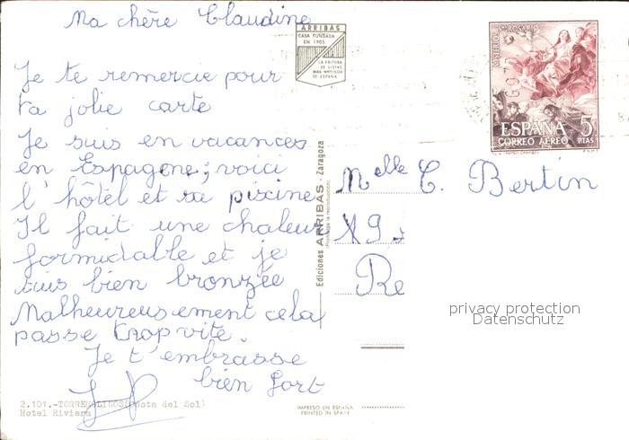 old postcard Torremolinos Hotel Riviera postalisch gelaufen Erhaltung siehe scans