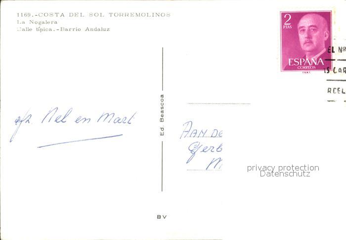 old postcard Torremolinos La Nogalera calle tipica Barrio Andaluz postalisch gelaufen Erhaltung siehe scans