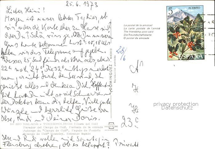 old postcard Torremolinos Parador del Campo de Golf postalisch gelaufen Erhaltung siehe scans