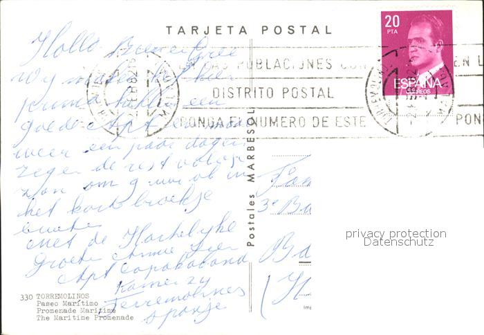 old postcard Torremolinos Paseo Maritimo Promenade postalisch gelaufen Erhaltung siehe scans