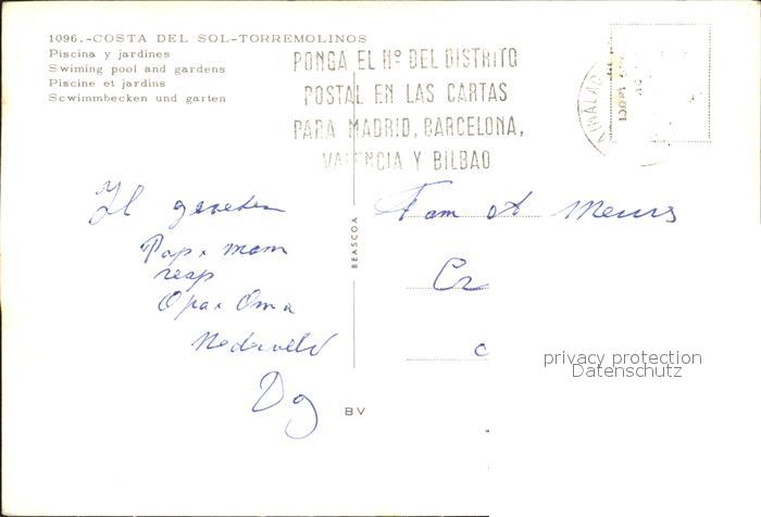 old postcard Torremolinos Piscina y jardines postalisch gelaufen Erhaltung siehe scans