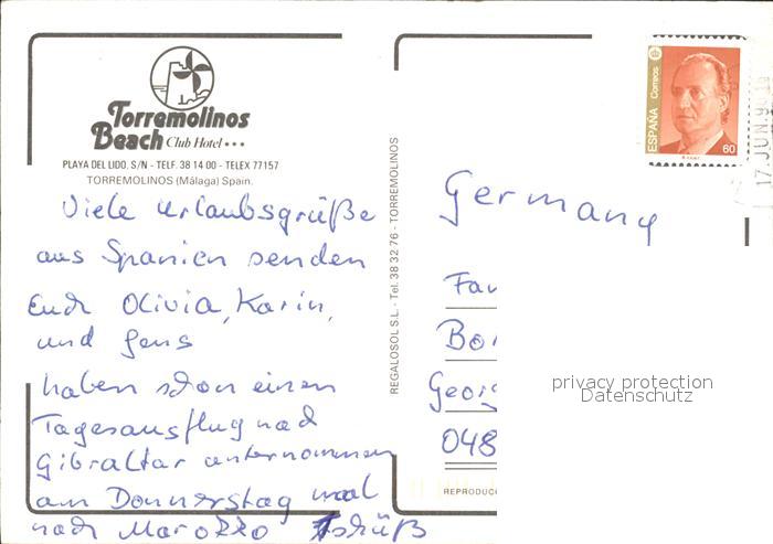 old postcard Torremolinos Playa del Lido Strand Hotels Swimmingpool postalisch gelaufen Erhaltung siehe scans