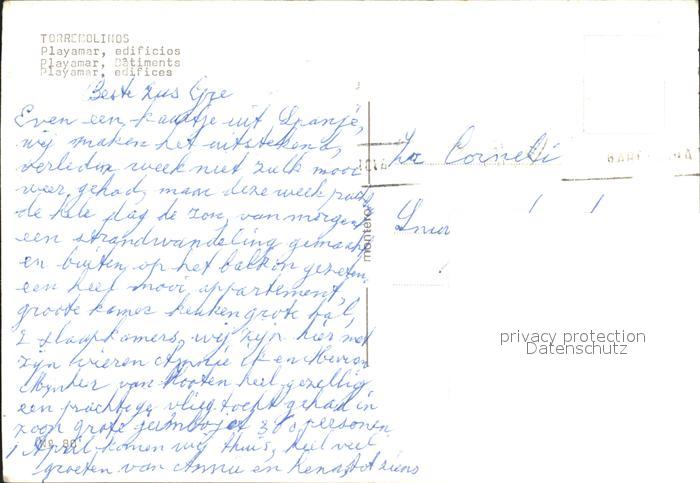 old postcard Torremolinos Playamar edificios postalisch gelaufen Erhaltung siehe scans