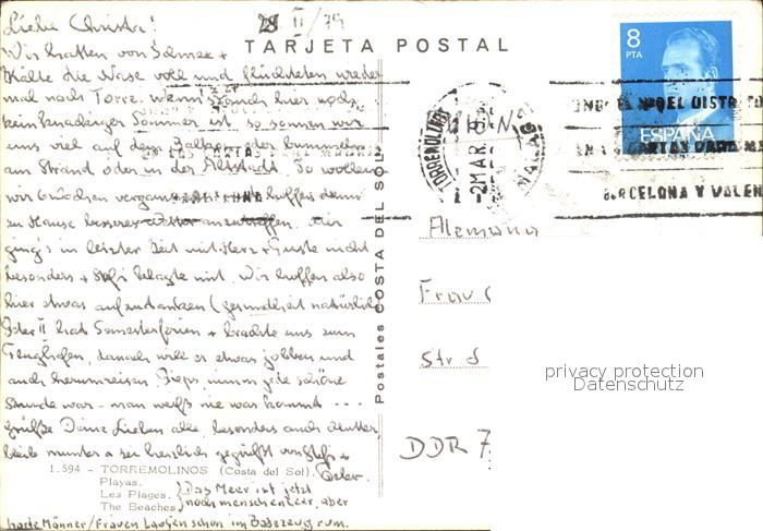 old postcard Torremolinos Playas postalisch gelaufen Erhaltung siehe scans [WerneD78 kt116box]