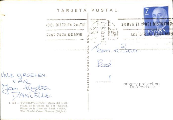 old postcard Torremolinos Plaza de la Costa del Sol Noche postalisch gelaufen Erhaltung siehe scans
