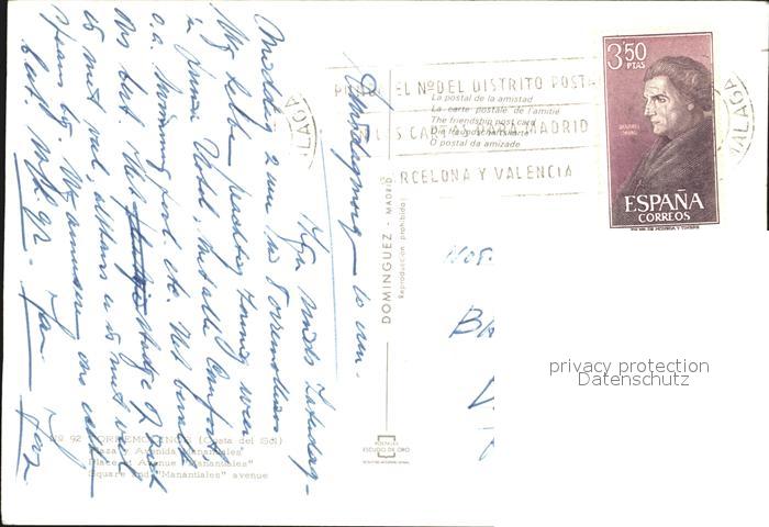 old postcard Torremolinos Plaza y Avenida Manantiales postalisch gelaufen Erhaltung siehe scans