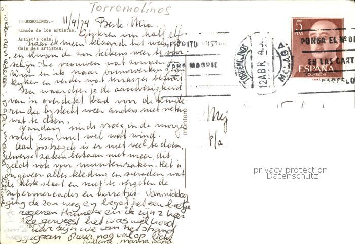 old postcard Torremolinos Rincon de los artistas Strassenkuenstler Maler postalisch gelaufen Erhaltung siehe scans