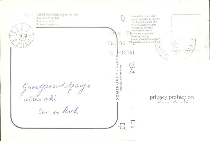 old postcard Torremolinos Strand Fliegeraufnahme postalisch gelaufen Erhaltung siehe scans