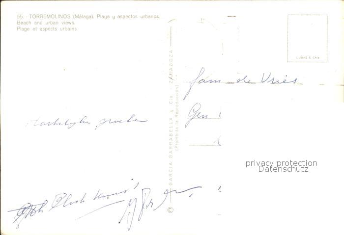 old postcard Torremolinos Strand Segelboot postalisch gelaufen Erhaltung siehe scans