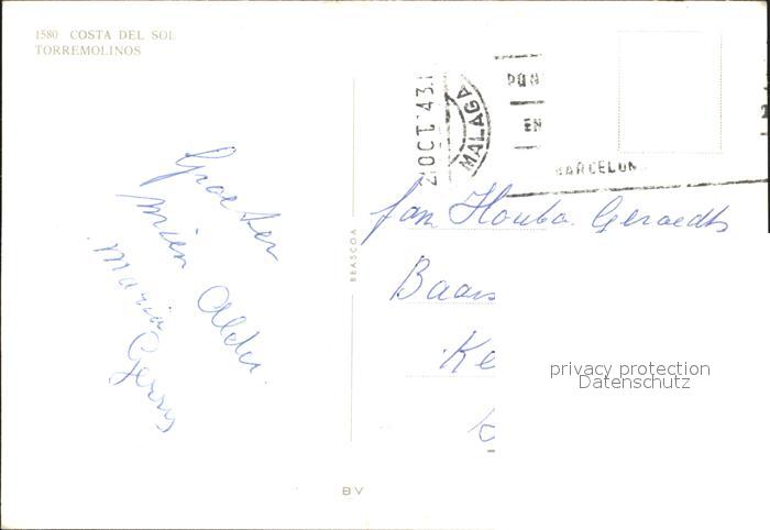 old postcard Torremolinos Strassenpartie Strand Bazar postalisch gelaufen Erhaltung siehe scans